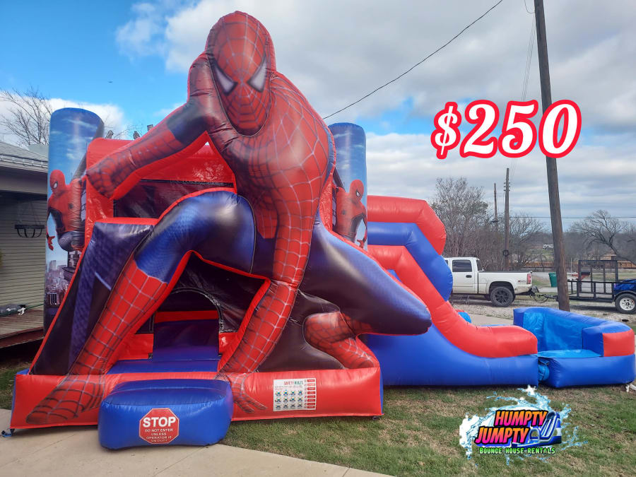 π·οΈ Get ready for an action-packed adventure with the Spiderman Bounce House and Slide Combo! πΈοΈ This incredible inflatable brings the excitement of everyone's favorite web-slinging superhero right to your backyard. Perfect for birthdays, parties, or any special occasion, this bounce house and slide combo will provide hours of fun for kids of all ages.
