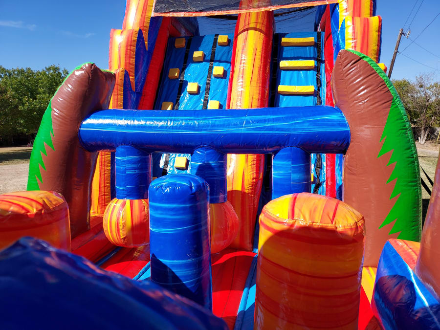 The 45 foot Dual Lane Obstacle has all kinds of challenging obstacles to go through. The inflatable has a huge wall climb that'll keep the kids entertained on the way up to the huge 18 foot dual lane slide that bottoms out in an inflatable pool. The Dual Lane Obstacle can be used wet and dry and is good for all ages and genders.