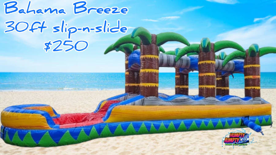 Get ready to make a splash this summer with the Bahama Breeze 30ft Slip-N-Slide. Order yours today and experience the ultimate tropical adventure in your own backyard!