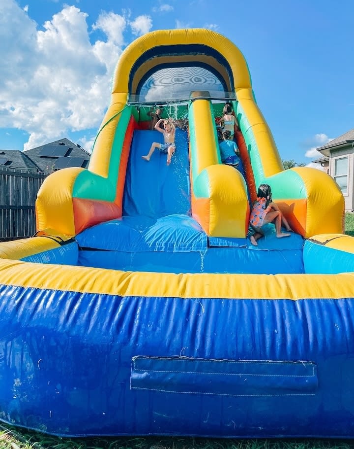 Yellow Mellow is a vibrant slide with a huge pool full of water to land into. It's a heavy duty commercial unit that good for all ages. Your guest will have hours of fun going up and down this inflatable slide.